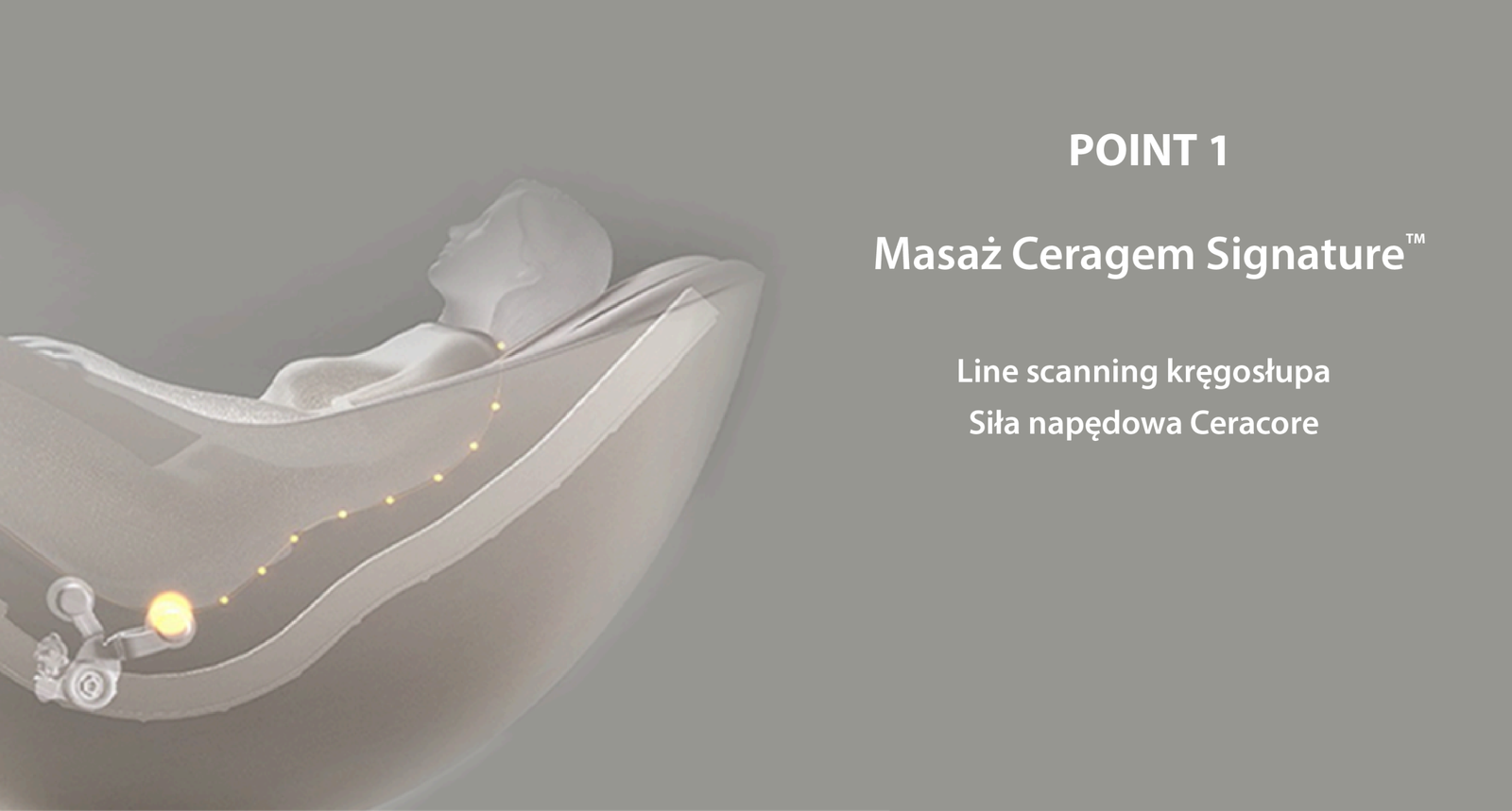 Masaż Ceragem Signature. Line scanning kręgosłupa. Siła napędowa Ceracore.