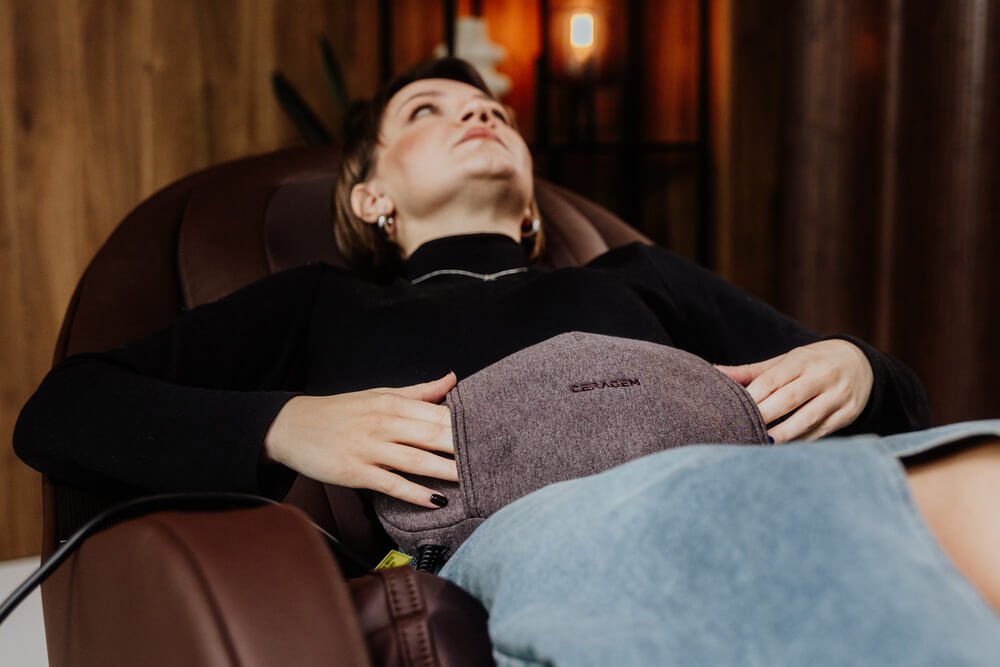 masażer brzucha łączy delikatną wibrację z przyjemnym ciepłem, tworząc komfortowe uczucie odprężenia w tej części ciała. Maksymalna temperatura 60C.